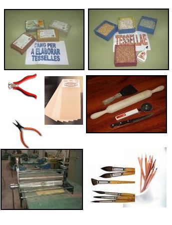 En la parte manipulativa del taller se intenta reproducir lo que se hacía en los talleres musivarios, si bien, simplificado, porque el material base que se ha escogido, el barro, así lo requiere. Se ha experimentado con otros materiales: azulejos, espuma de colores y piedrecillas, pero finalmente se escogió el barro porque resulta fácil de manipular, sin riesgos, y por el resultado final.