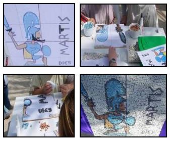 La actividad, además, puede tener la duración que deseemos, desde una hora de clase -si se trata de un mosaico sencillo y las teselas están preparadas- hasta diversas semanas, si fabricamos las teselas y se realizan mosaicos más complejos.