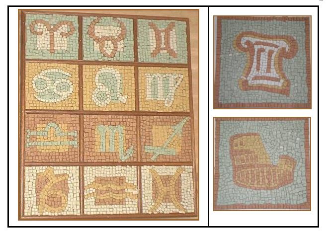 El mosaico puede ser más grande y hacerse de manera colectiva. En este caso se pueden dibujar, por ejemplo, las constelaciones zodiacales y los horóscopos correspondientes.