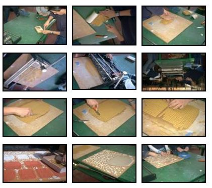 El barro se deja secar durante unas cuantas horas (también podemos acelerar el proceso con aparatos eléctricos). Después se separan las teselas y se clasifican según el tamaño y el color.