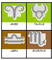Si se trata de un mosaico individual pueden servir, por ejemplo, los glifos de los horóscopos. También se puede hacer de las letras de el alfabeto griego, en mayúsculas o en minúsculas,