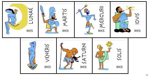 También puede elaborarse un mosaico de los días de la semana y dibujar los dioses que les dan nombre, así como los atributos y características que les son propias. Se puede añadir el nombre de cada uno de los días en latín.